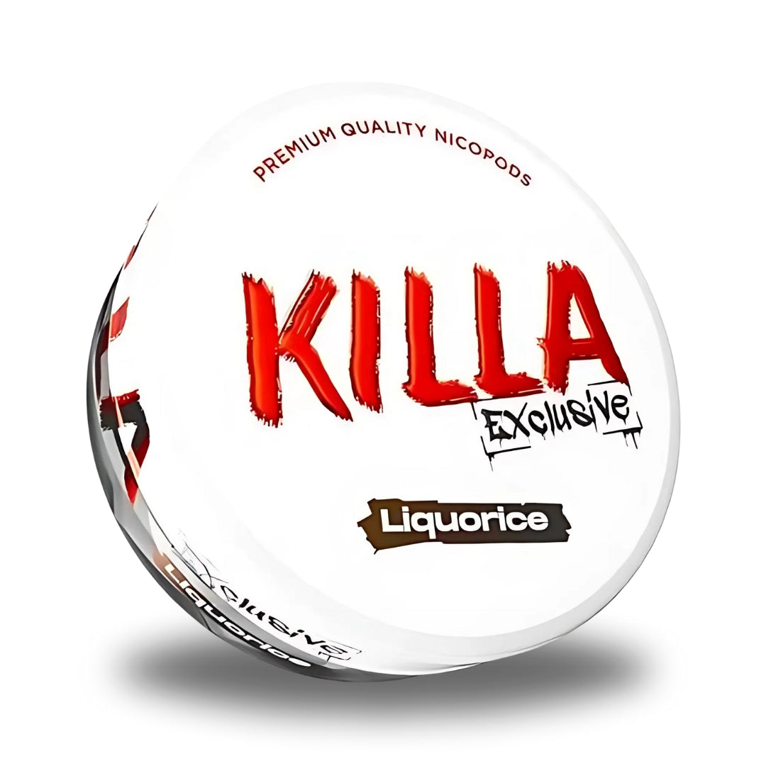 Killa Exclusive liquorice have a liquorice taste. These nicotine pouches are 100% tobacco-free with a nicotine strength of 13.2mg per pouch.