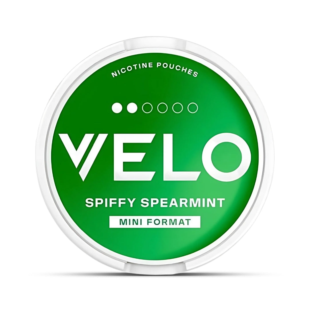 VELO Spiffy Spearmint Mellow Mini are nicotine pouches shaped in a mini size format. They have a spearmint flavor. They are 100% tobacco free and contain 6mg of nicotine per pouch.
